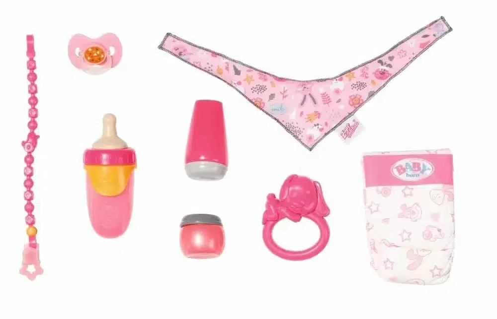 Baby Born yolculuğuna başlamak için gereken tüm temel bakım ürünleri bu 8 parçalı aksesuar setinde! Çocuklar bebeklerinin bakımını yaparken hem eğlenecek hem de rol yapma oyunlarıyla hayal güçlerini geliştirecek.