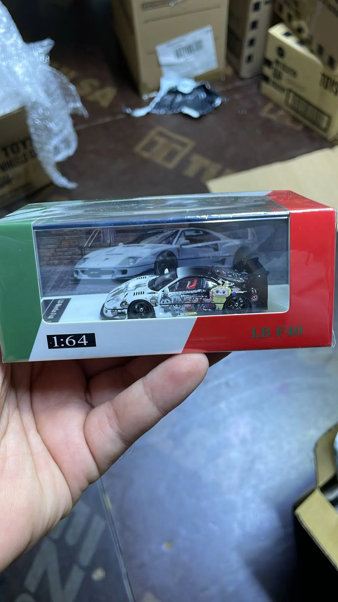 Fine Model LB F40 Labubu tasarım 1:64 ölçek koleksiyon model araba. Detaylı tasarımı ve özel kaplama grafikleri ile koleksiyon severler için üretilmiş vitrinde sergilenmeye uygun bir modeldir.