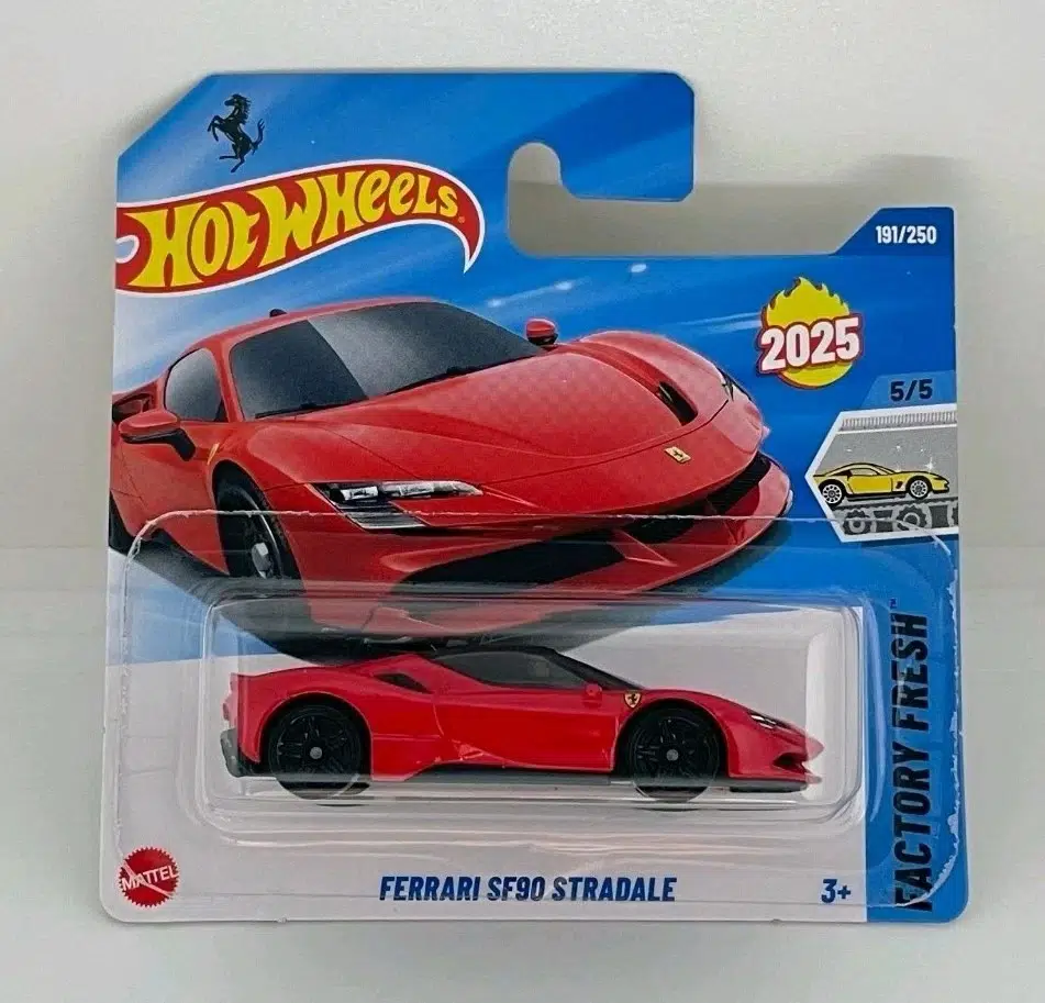 Hot Wheels 2025 koleksiyonunun göz alıcı parçalarından biri olan Ferrari SF90 Stradale, detaylı tasarımı ve ikonik kırmızı rengiyle koleksiyonerlere ve araba tutkunlarına hitap ediyor.