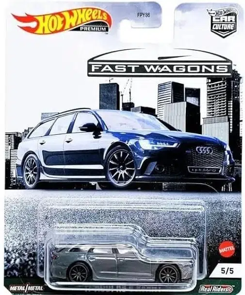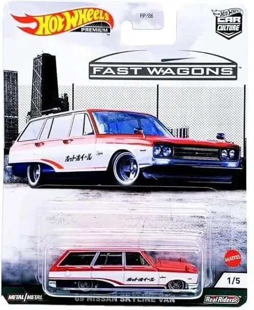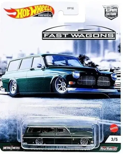 Hot Wheels Premium Car Culture Fast Wagons serisinin 1. seti, station wagon ve estate kasa tutkunları için özel olarak hazırlanmış 5’li bir koleksiyon setidir. Premium seri kalitesinde üretilen bu set, 1:64 ölçekli metal gövdeye ve Real Riders kauçuk lastiklere sahiptir.