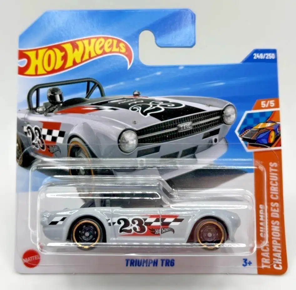 Hot Wheels Triumph TR6, klasik yarış ruhunu modern koleksiyon tutkusuyla birleştiren özel bir 1:64 ölçekli diecast modeldir. 249/250 kart numarası ve detaylı tasarımıyla hem koleksiyonerler hem de Hot Wheels severler için ideal bir parçadır.