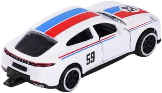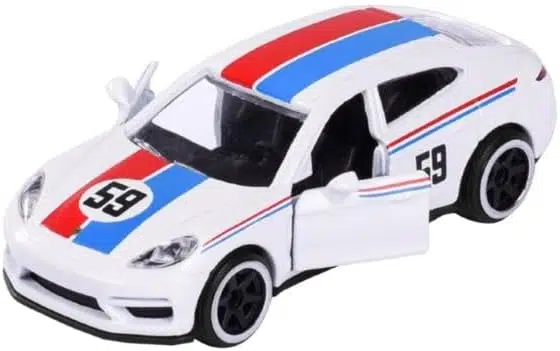 Majorette Porsche Edition serisinden Porsche Panamera Turbo model diecast araba ile koleksiyonunuza prestij katın! Beyaz zemin üzerine kırmızı ve mavi şerit tasarımı ve 59 numaralı detaylarıyla dikkat çeken bu model, açılabilen kapılarıyla gerçekçi bir görünüm sunar.
