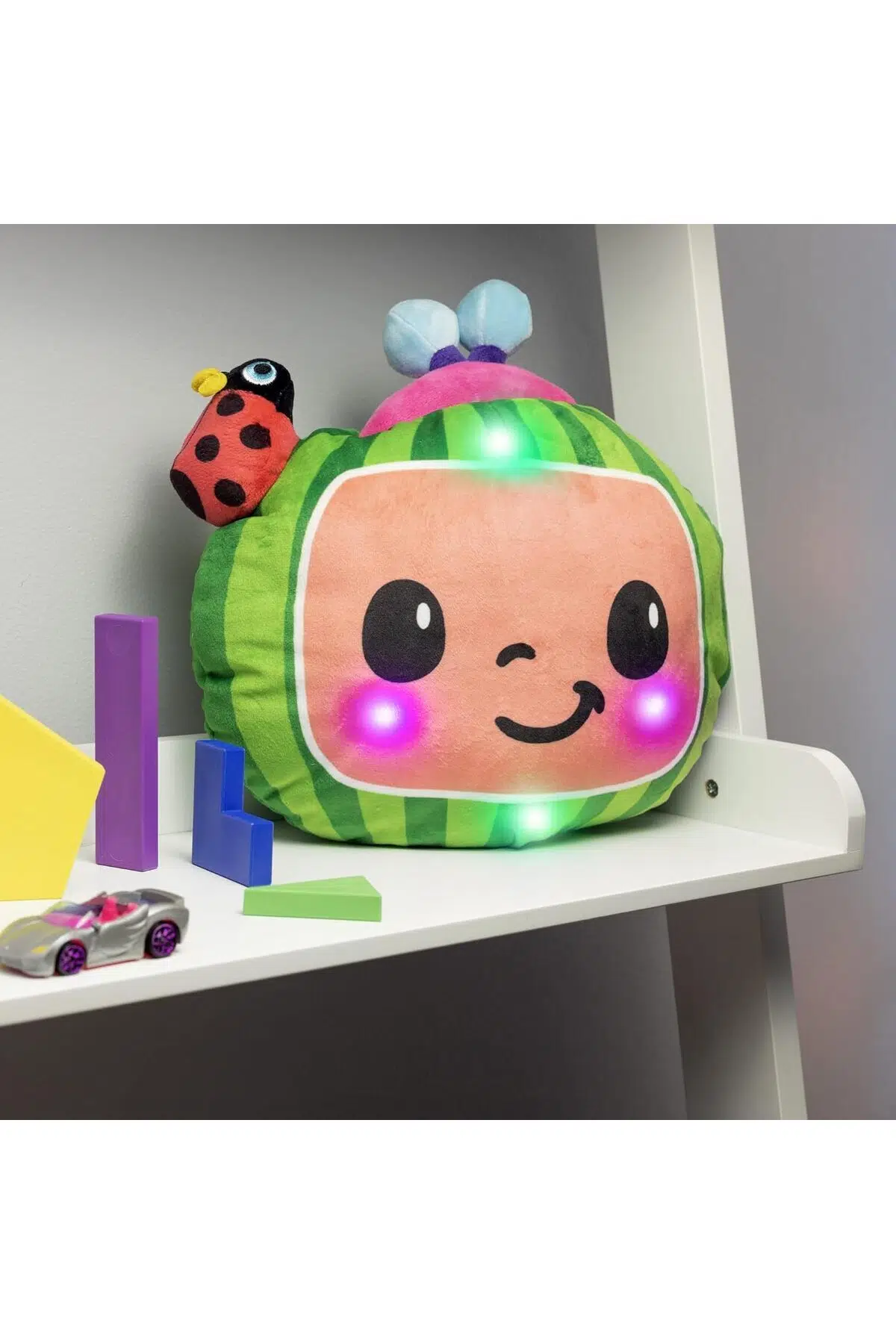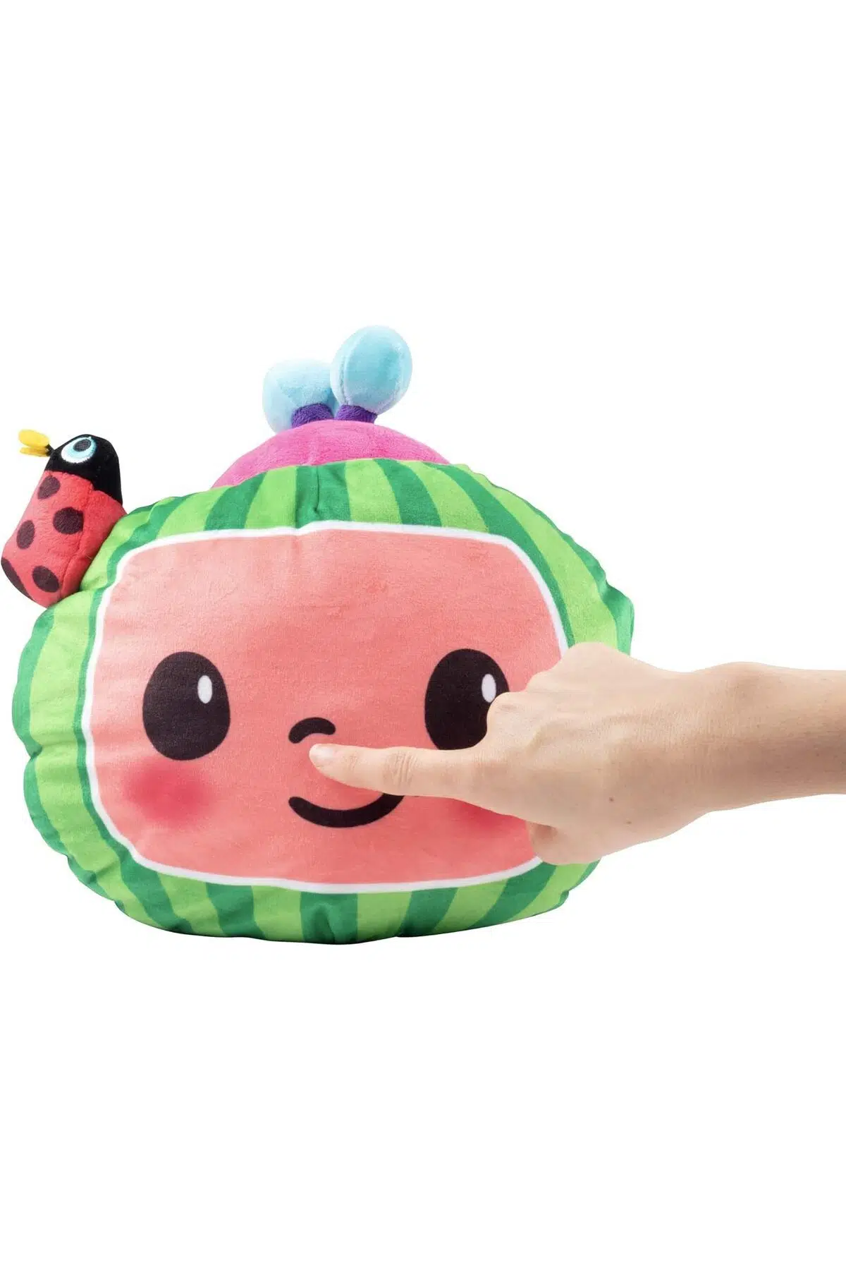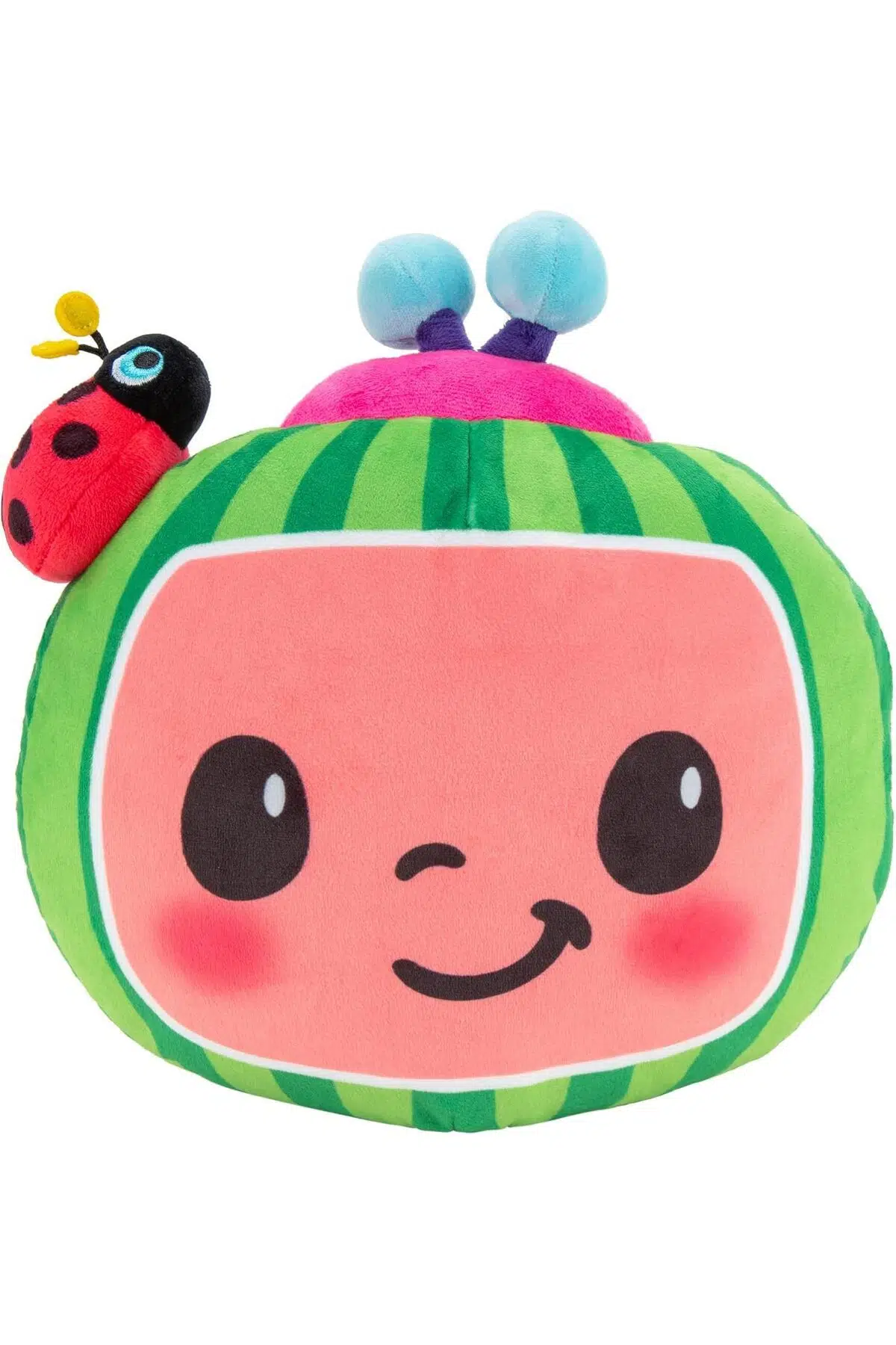Kafasındaki uğur böceği ile sana şans getirmek istiyor! Sesli ve Işıklı Cocomelon Karpuz Peluş senin ile tanışmak için sabırsızlanıyor.