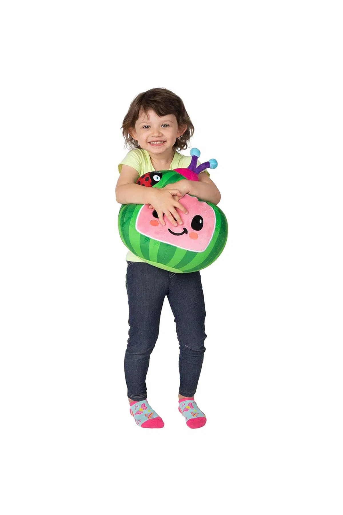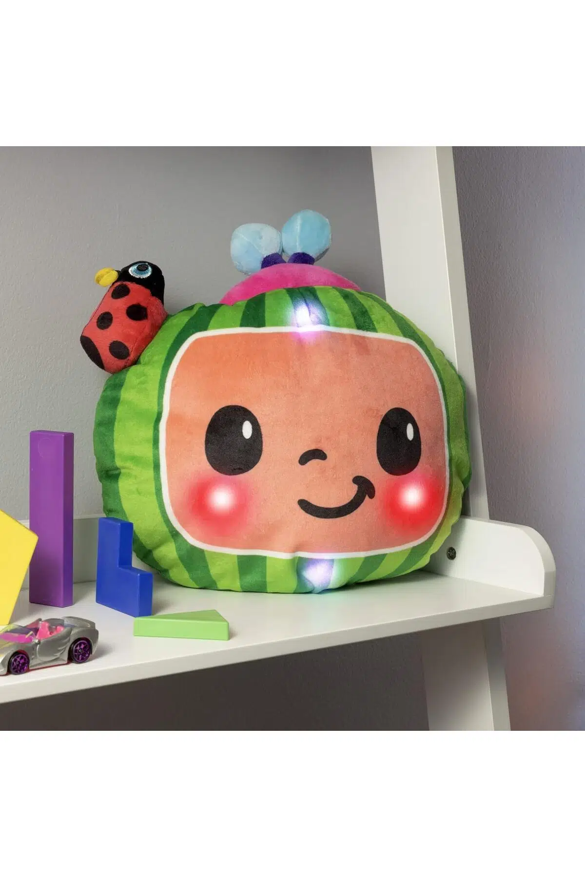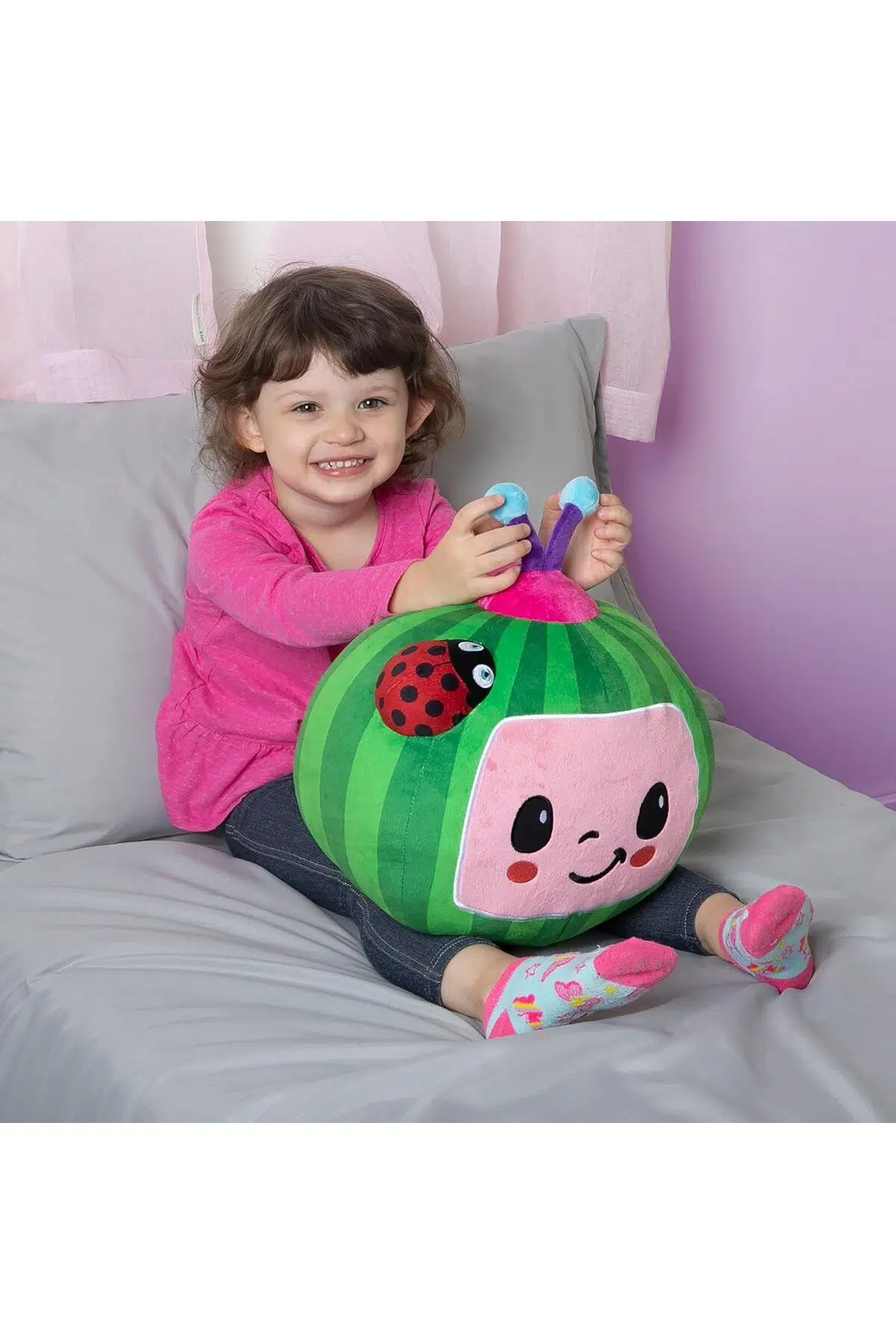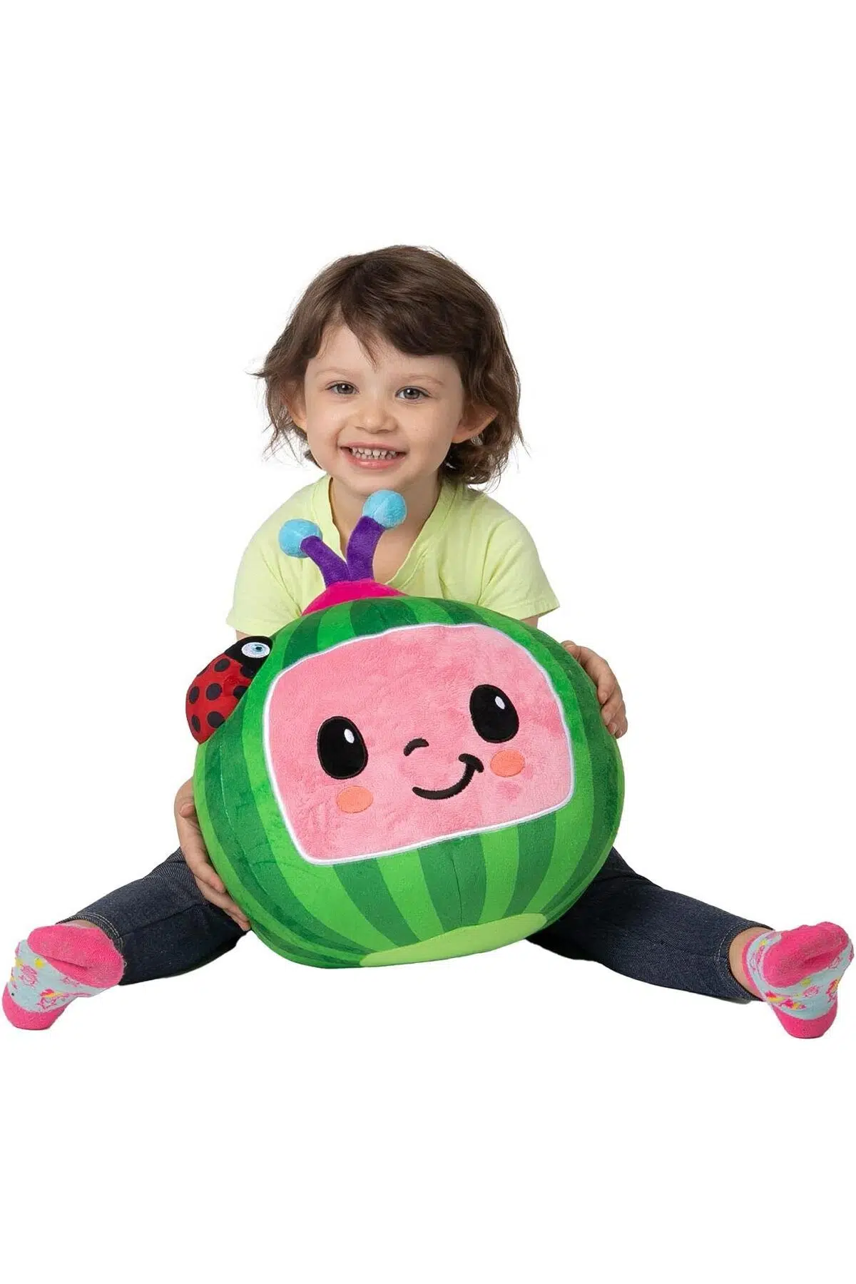 Kafasındaki uğur böceği ile sana şans getirmek istiyor! Sesli ve Işıklı Cocomelon Karpuz Peluş senin ile tanışmak için sabırsızlanıyor.