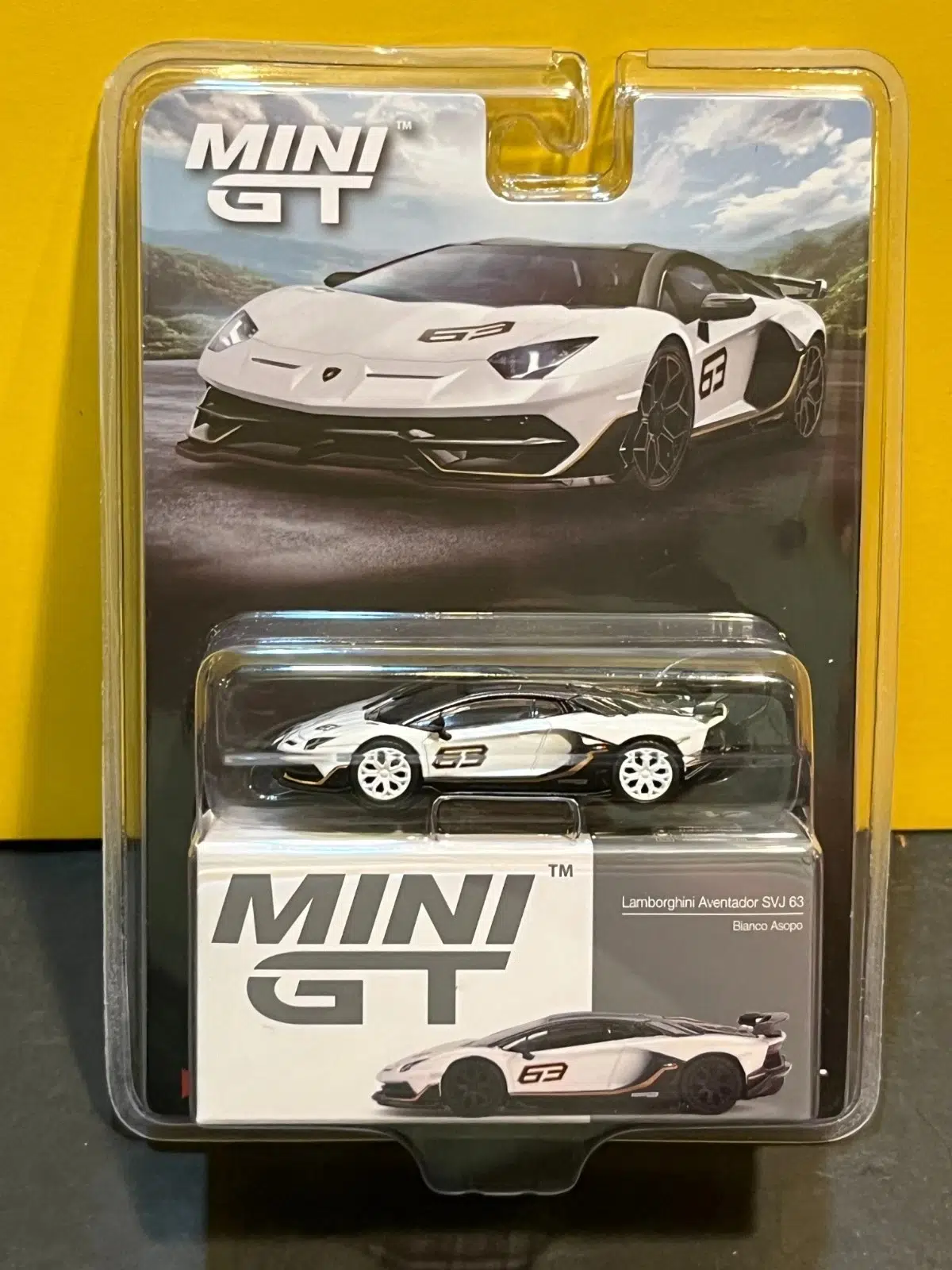 Mini GT tarafından üretilen Lamborghini Aventador SVJ 63 Bianco Asopo modeli, koleksiyoncular için özel bir yere sahip. Bu ürünün Chase (nadir) versiyonu, standart siyah jant yerine beyaz jantlarıyla ayrışmaktadır.
