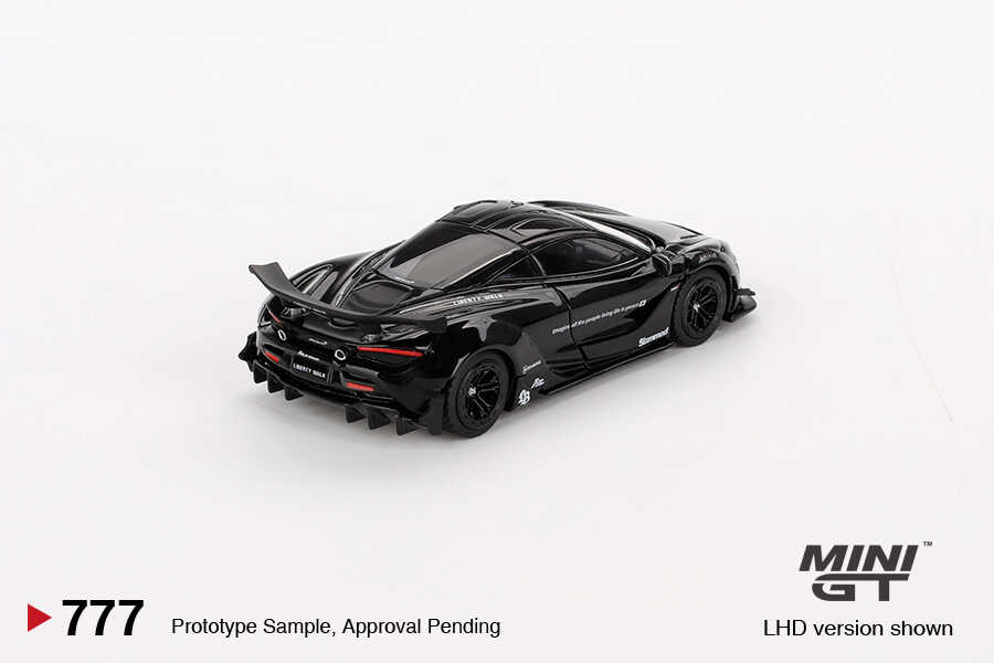 Mini GT tarafından özenle üretilen McLaren 720S LB Works Black (MGT00777) modeli, 1:64 ölçekli diecast tasarımıyla dikkat çekiyor. Liberty Walk gövde kitiyle modifiye edilmiş bu özel model, mat siyah rengi, detaylı jant tasarımı ve aerodinamik hatlarıyla gerçek aracın minyatür versiyonunu sunuyor.