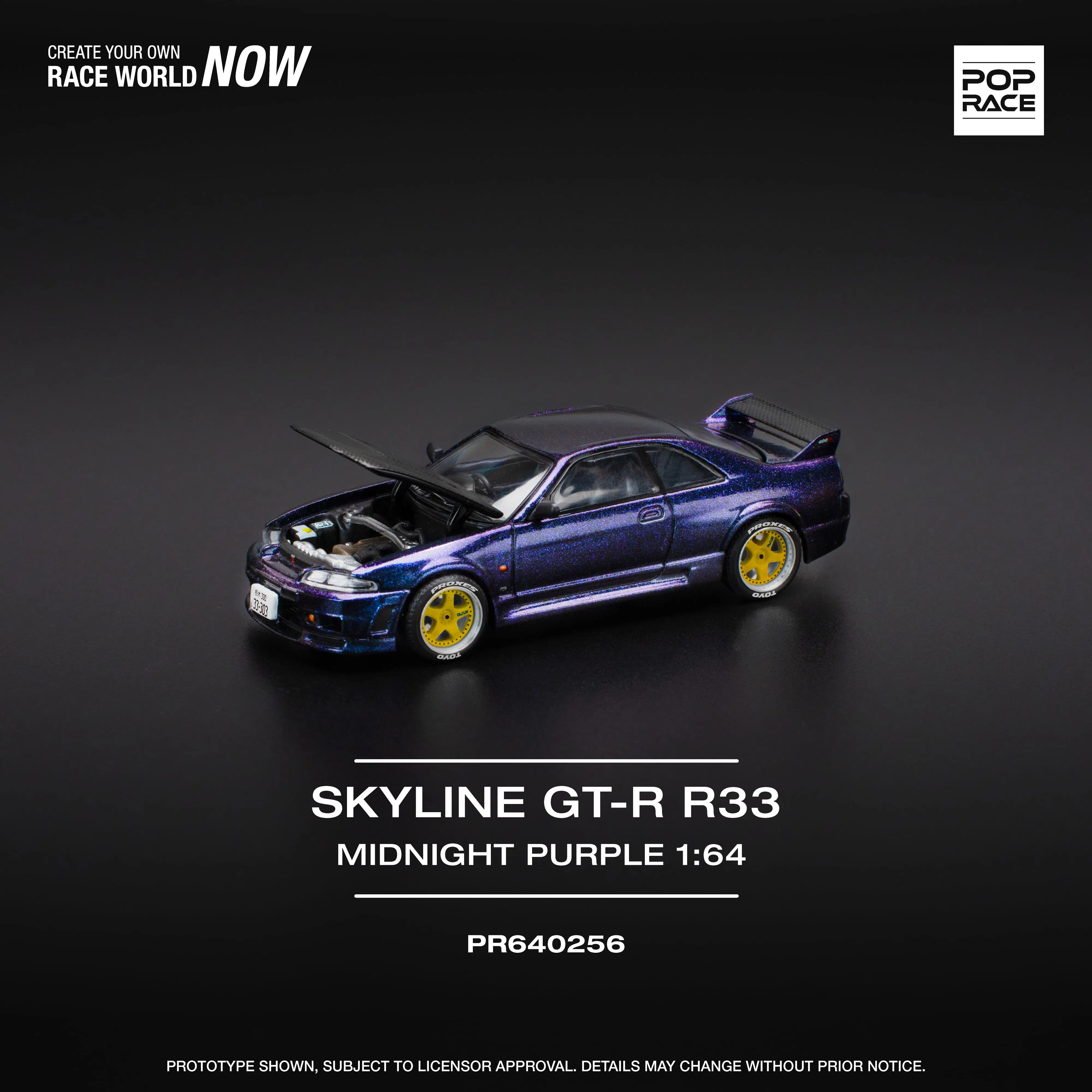 Pop Race kalitesiyle üretilmiş Nissan Skyline GT-R R33 Midnight Purple modeli, 1:64 ölçeğinde koleksiyonluk bir diecast modeldir. Gerçeğine sadık gövde oranları, özel midnight purple renk geçişi ve detaylı jant tasarımıyla JDM tutkunları için öne çıkan bir parçadır.