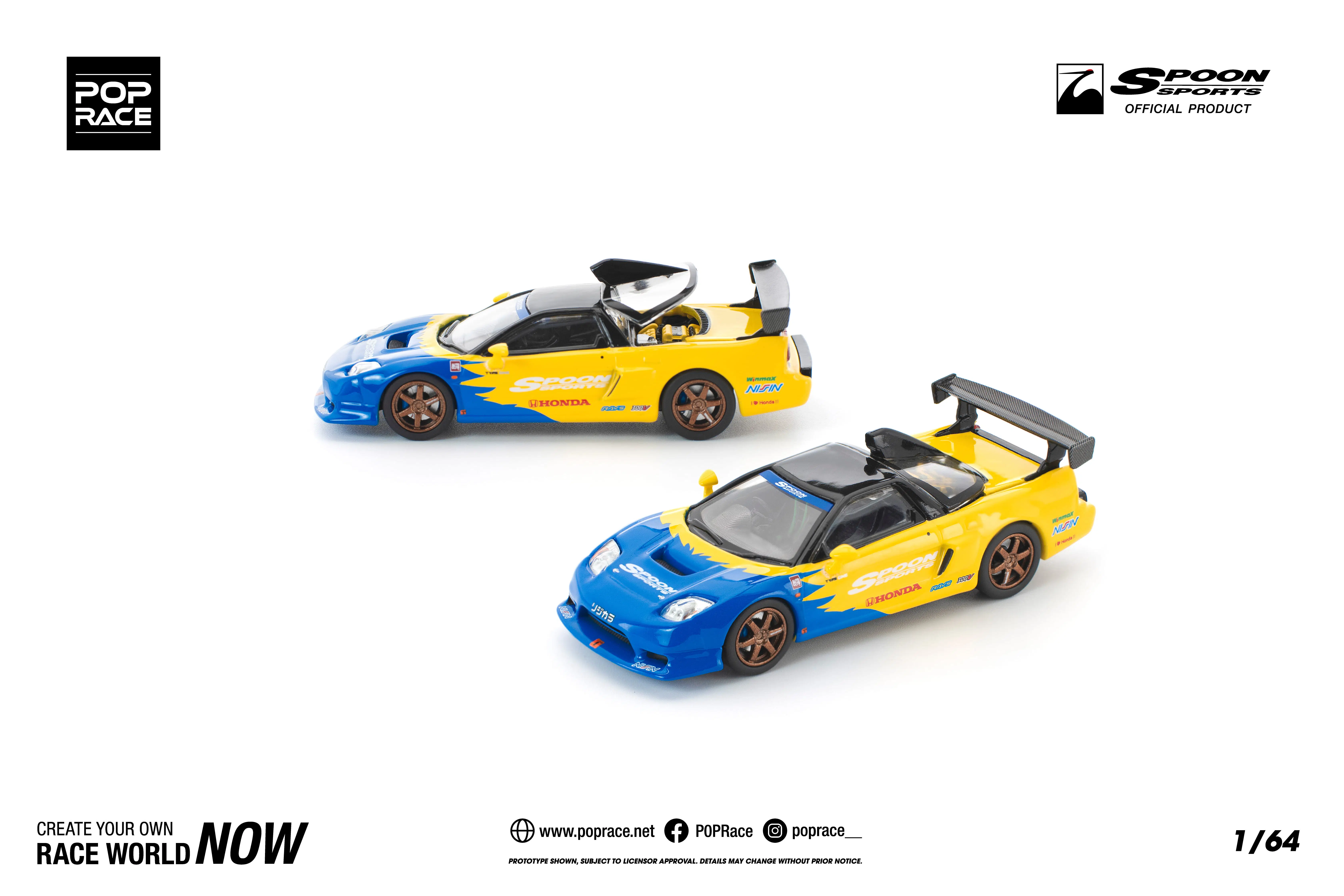 1 adet Pop Race Honda NSX-R GT Spoon Sports 1:64 model araba