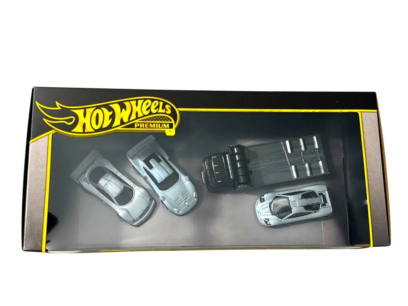 Hot Wheels Premium Fleet Street seti, koleksiyon tutkunları için efsanevi yarış araçlarını bir araya getiriyor. Set içerisinde 1997 Porsche 911 GT1, 1997 Mercedes-Benz CLK-GTR, McLaren F1 ve detaylı tasarıma sahip taşıyıcı kamyonet yer almaktadır.