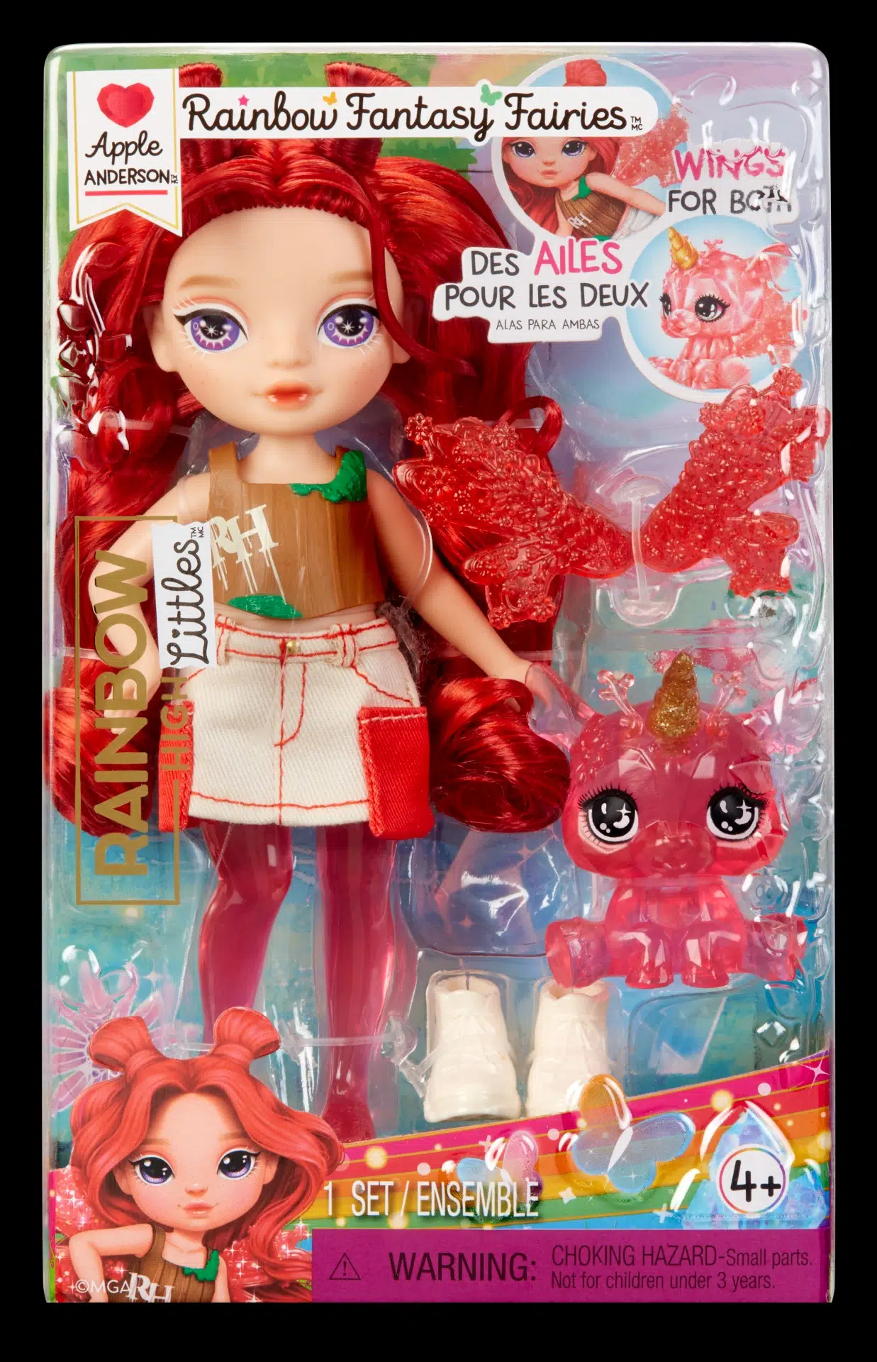 Bu özel set içerisinde Apple Anderson bebeği, çıkarılabilir kıyafetleri, aksesuarları ve sihirli evcil hayvanı yer alır. Gökkuşağı Perisi serisine özel tasarlanan kanatlar hem bebeğe hem de evcil hayvanına takılabilir. Böylece oyun sırasında farklı kombinler oluşturmak mümkündür.
